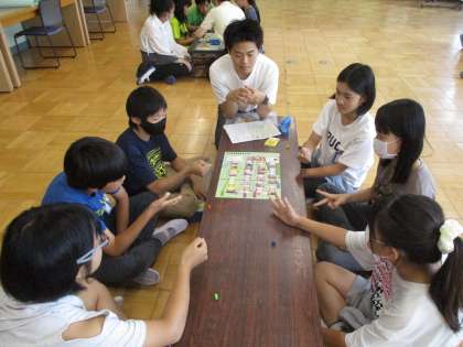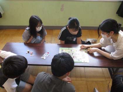 1・2組と龍谷大学の大学生で深草すごろくをしました。