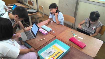 グーグルマップで調べたり、グループで何があったか話し合って思い出したりしています。