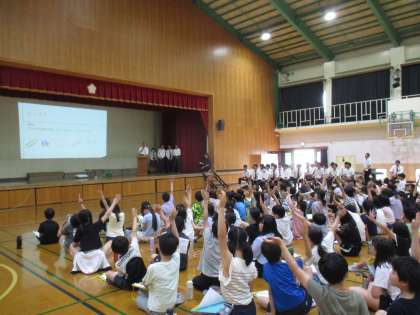 高校生のプレゼンテーションは、クイズも盛り込みながら小学生の子どもたちにも分かりやすくなるように工夫されていました。