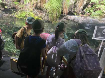 大きな水槽や暗い水槽など様々な工夫がされていました。チンアナゴが見れなくて残念そうでした。