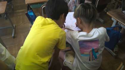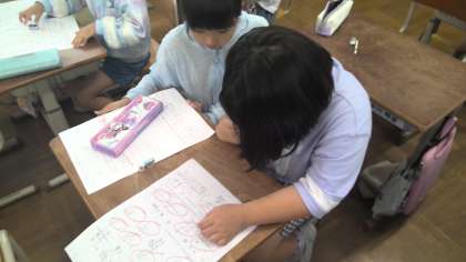 算数の学習の時間に練習問題をしました。教え合って問題を解いていました。ミニ先生がたくさんいました。
