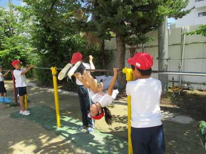 できる技のコツをお友達に教えたり、お互いに技を見合ってアドバイスしたりしながら、学習に取り組んでいます。