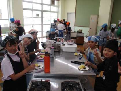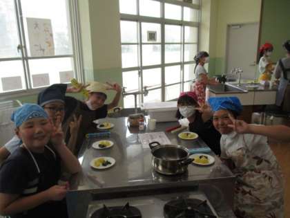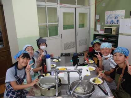 自分たちで作った「ゆでいも」と「青菜のおひたし」はとってもおいしい!!!