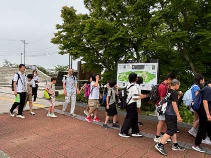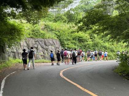 6年・修学旅行1日目「山頂からホテルまで歩きます」