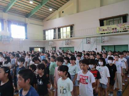 1学期の終業式の様子です。1学期の始業式のときよりも随分と『聞く姿勢』が良くなり、たくましい4年生になってきています。校長先生からは『あ・か・る・い』をキーワードにお話をしていただきましたが、しっかりと意識しながら夏休みを過ごしてほしいと思います。学級に戻ってから、もう一度ふり返り、1人1人がどんな夏休みにするのか計画と目標を立てました。充実した夏休みを送ってくれることを願っています。