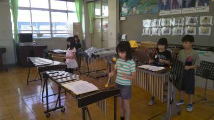 音楽の学習では、「ゆかいな木きん」という曲を、リコーダー・けんばんハーモニカ・歌・木きんにわかれて演奏しました。始めはむずかしかったようですが、だんだん上手になってきました。