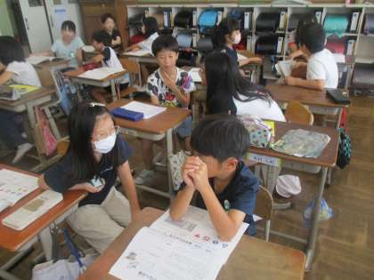 地震や風水害から身を守る方法を考えました。学校にいるときや登下校の時の安全を確かめました。