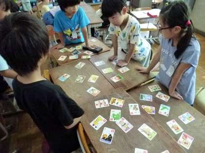 今日の国語科では「ことばあそびをしよう」について学習しました。数え歌や言葉遊び歌などを歌ったり、かるたをしたりしてことばを使って遊びながら学習しました。かるたの読み方に苦戦している様子でしたが、班の友達と一緒にかるたを楽しんでいました。