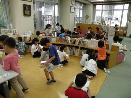 中間休みに雨が降っていたため,子どもたちが図書館にたくさん集まってきました。