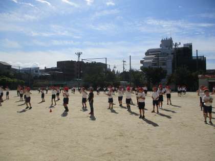 深リンピックの本番に向けて一生懸命練習しています。今日は初めて団体演技をするときの入場の仕方を練習しました。入場の練習は初めてでしたが、自分たちで縦や横の列をそろえるなど、本番に向けてかっこよく踊ろうとする姿が見られました。
