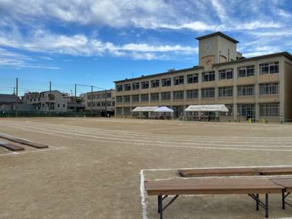 (2)自転車・バイクは、深草中学校前の「名下グランド」へ!(8時00分開門・13時00分完全施錠)※深草小学校校内は駐輪できません。