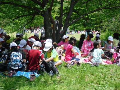 おいしいお弁当を食べたあとは、広い芝生で遊びました。