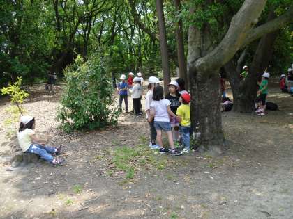 到着後、子どもたちはグループで園内でのウォークラリーを楽しみました。