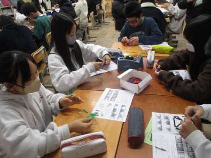 国語、数学、理科、社会、英語、美術に分かれて体験授業をしました。
