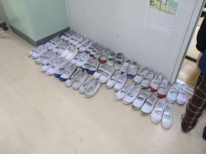 茶道体験をする前に、上靴をきれいに並べていました。言われなくても丁寧に、そしてきれいにを心掛けることはとても大切ですね。素晴らしい。