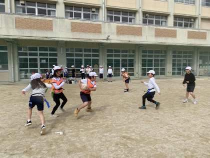 学級対抗でタグラグビー大会をしました。4学級合同で行われ、テンションとやる気は最高潮!それぞれのチームの良さが発揮され、仲間同士の結束の強さを感じることができました。また6年生で実施するのが楽しみなようです。