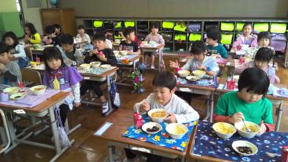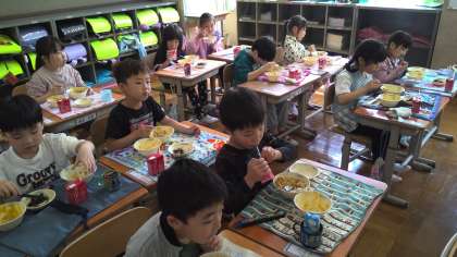 今日の給食は、「チキンカレー」でした。たくさんおかわりをしてくれたので、なんと…ご飯もカレーもひじきも空っぽに!「カレー最高!」と言ってモクモクと食べていました!明日の給食も楽しみですね。