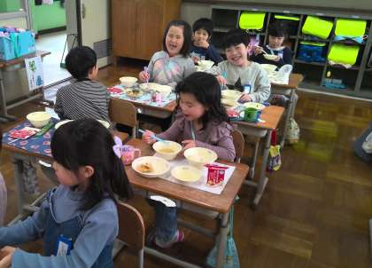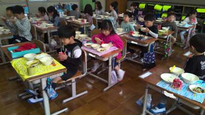 今日の給食は、「サバの竜田揚げ」でした。お箸で、ほぐすのが難しかったようてすが、美味しく食べていました。「唐揚げみたいで、美味しい!」と喜んでいました。