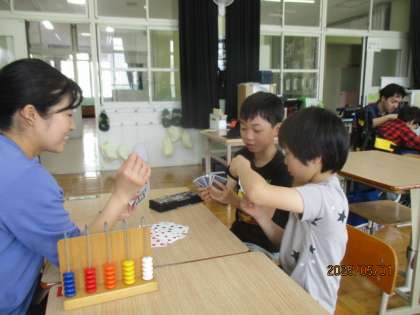 トランプやパズル型ゲームの活動を通して計算に挑戦したり,校内の様子を観察しながら季節を感じたり…。
