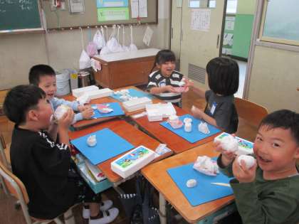ねんどでごちそうを作った後は、「いただきま〜す!」と、みんなでパーティーをしました。