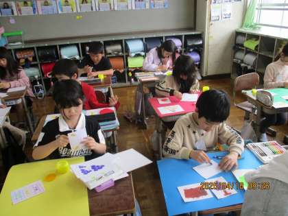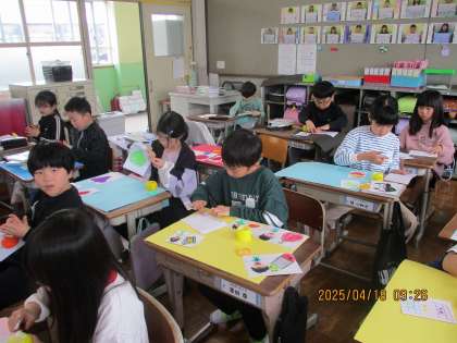 クレパスとクーピーを使って、すきなことや3年生になって楽しみにしていることを絵に表しました。クレパスでは、濃くぬって指やティッシュでぼかしてみたり、