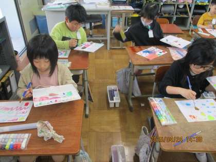 3年生図工「絵のぐ+水+ふで=いいかんじ!」