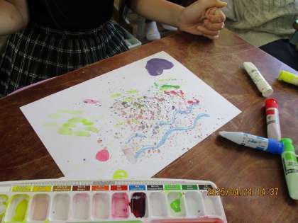 何を描いたつもりはないですが、あれ?宇宙や食べ物に見えますね。
