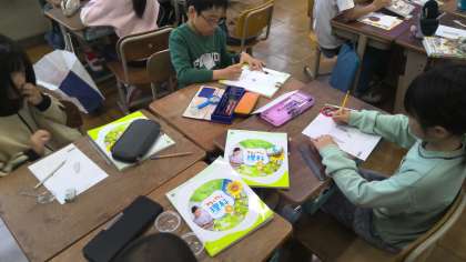 ホウセンカとひまわりの種の観察をしました。虫眼鏡をつかって形や特徴を隅々まで調べてカードに記録しました。来週は種まきをします。楽しみですね。