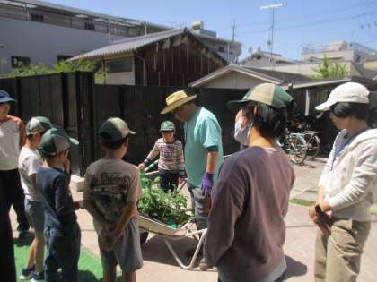 今日はわかばみんなで、夏の野菜の苗を植えました。