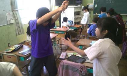 有名な作品を見るだけでなく、体全体を使って表現(まねっこ)して鑑賞しました。