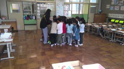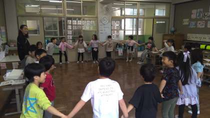 音楽の学習では、歌を歌いながら体で表現しました。ひーらいた、ひーらいたー♪大きな蓮華の花が咲きましたね。