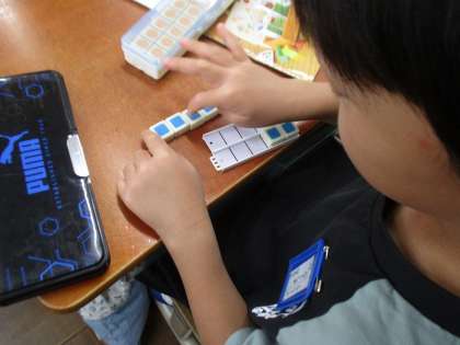 ある数はいくつといくつで出来ているのかを調べました。数図ブロックやおはじきの挿絵を上手に利用して問題解決しようとしていました。
