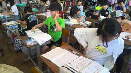 「この漢字は読み方分からんから、画数数えよう」「部首がさんずいやから、部首さくいんが使えそう」などと、どの調べ方をしたらいいかを考えて、楽しく辞典を使うことができています。