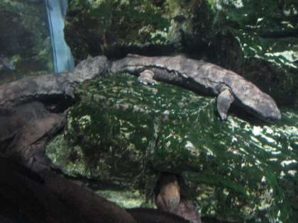 校外学習で水族館に行ってきました。オオサンショウウオに食い入るように見つめていました。クイズラリーもしました。