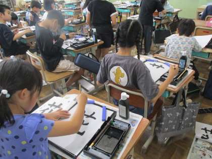 毛筆の学習を頑張りました。