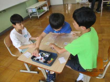わかば学級オリジナルのカードゲームでは、上級生が下級生に遊び方を教えます。