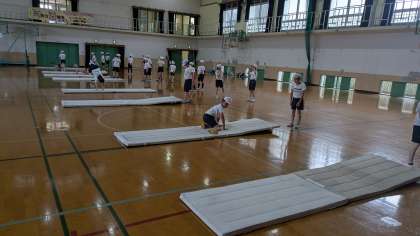 開脚前転・側転・ロンダードなどの技に挑戦しています。