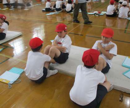 今日は新体力テストの種目の一つである、上体起こしを学年で行いました。
