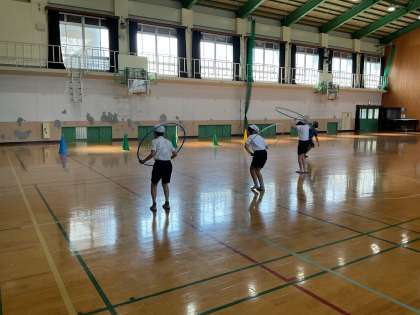 フラフープを転がしたり