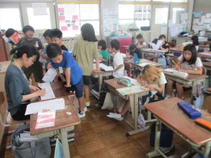 丁寧に書いて、丸をもらえると嬉しいですね。友達の字を見て思わず「きれい!」と言っている声も聞こえてきます。