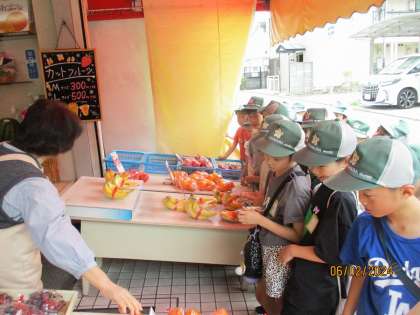 校区探検では,学校の周りの校区を探検しました。幼稚園やお花屋さん,果物屋さんやお茶屋さん,布団屋さんなど,色々なお店や場所を周りました。途中,公園で休憩もしつつ,校区探検を満喫しました。お店では,お店の人に沢山質問もでき,様々な学びを得ることが出来ました。今後の授業で,校区の様子をまとめていくのが楽しみです。
