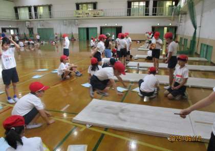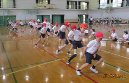 反復横跳び、ソフトボール投げ、長座体前屈、立ち幅跳びの記録をとりました。去年よりも記録が伸びて喜んでいる子もたくさんいました。
