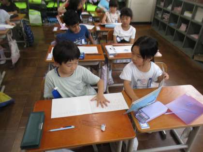 算数の学習では、式の説明をペアでしました。話したり、聞いたりする力は度の学習においても大切であり、基礎基本です。しっかりと今のうちに力をつけてほしいと思っています。