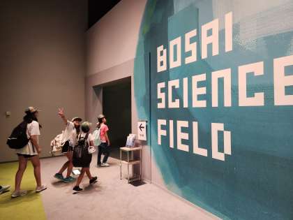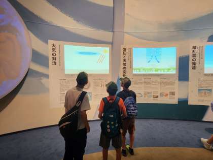 東館では、地震や津波のメカニズムが展示されていて、パネルを見ながら学びます。