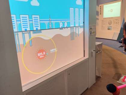 ハンマーで叩いた力をマグニチュードに換算して表示されます。