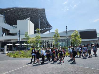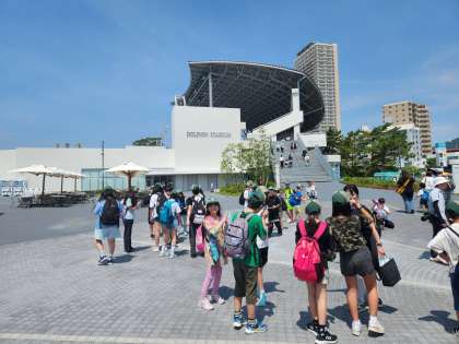 クラス写真のあと、グループごとに館内を見て回ります。