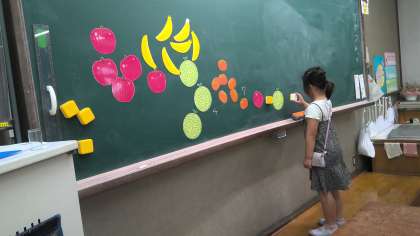 算数の学習では、「かずしらべ」の学習をしました。くだのもの数をどのように調べると分かりやすいか、みんなで考えました。色々な考えがでて、面白かったです♪