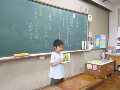 国語の学習では、自分で選んだつぼみでクイズ大会をしました。「これはなんのつばみでしょう。」「これは○○のつぼみです。」と、上手に発表ができていました。また、選んだつぼみの特徴も見つけることができました。