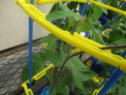 アサガオの花が咲きだしました。早く自分も咲いてほしいなと待ち遠しい様子です。つぼみがたくさん出てきたり、つるが思いもよらない伸び方をしていたり。新たな発見に目を丸くしていました。