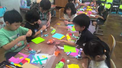 地域の方に来ていただき、七夕の笹につける飾りの作り方を教えてもらいました。